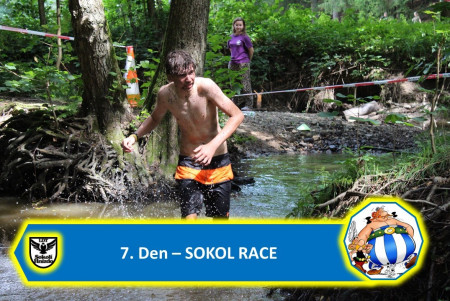 Dnešní den se obyvatelé galské vesničky sešli na velkém sportovním klání, neboť začal „Sokol Race“. Pro účastníky byla připravena náročná trať. Bahenní lázeň odstartovala připravené borce. Nejmladší oddíl byl na startu jako první. Odhodlání bylo vysoké. Po bahenní lázni následoval běh lesním terénem, poté výstup na vrchol kopce a opětovný sestup, proskakování pneumatik, běh se zátěží, chůze po laně, vodní lázeň, koulení pneumatik, podlézání překážky a závěrečný běh. Celou trať sportovci proběhli technicky správně (tj. bez trestných bodů) a ve skvělém čase. Za odvedené výkony si pak zasloužili pořádnou dávku debrecínského guláše s hromadou houskových knedlíků. Večerní diskotéka ukončila sportovní den.