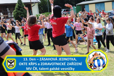 13. Den – ZÁSAHOVÁ JEDNOTKA, OKTE a ZDRAVOTNICKÉ ZAŘÍZENÍ MV ČR, talent galské vesničky a vyhodnocení Sokol Race