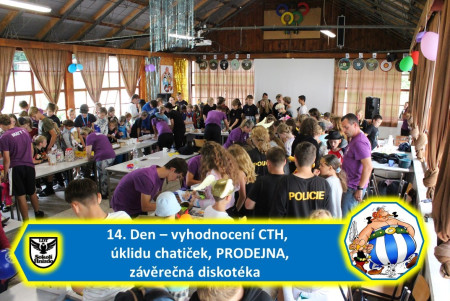14. Den – vyhodnocení CTH, úklidu chatiček, PRODEJNA, závěrečná diskotéka